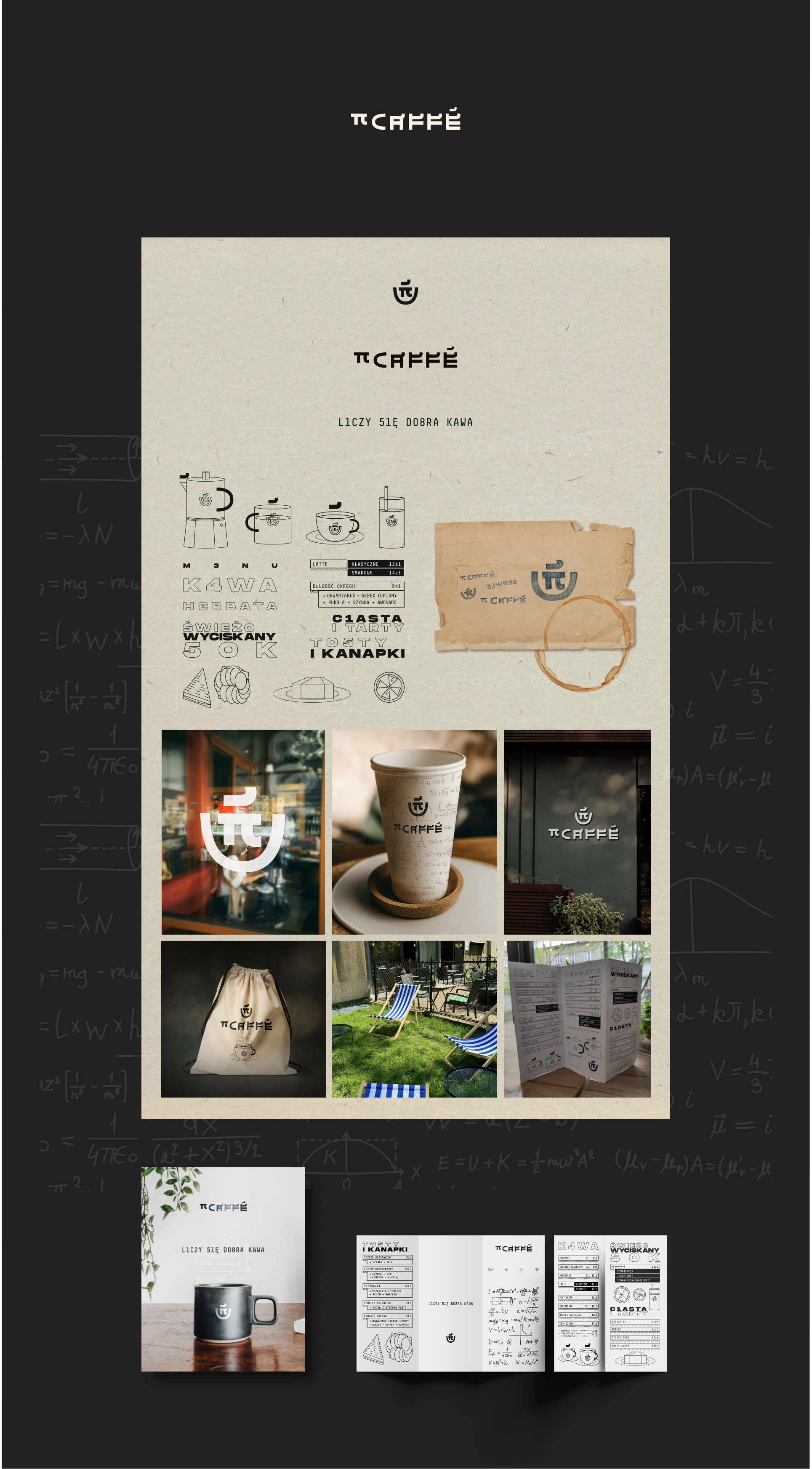 Ta historia zaczęła się od szkoły PiKwadrat, specjalizującej się w nauczaniu matematyki, pod którą z czasem powstała kameralna kawiarnia – PiCaffe. Zlokalizowana w tym samym budynku, okazała się dobrym miejscem dla rodziców oczekujących na swoje pociechy lub po prostu jako samodzielny punkt gastronomiczny. W jej brandingu nie mogło więc zabraknąć motywu przewodniego, czyli matematyki, która wniknęła głęboko w identyfikację wizualną i w wystrój lokalu.
