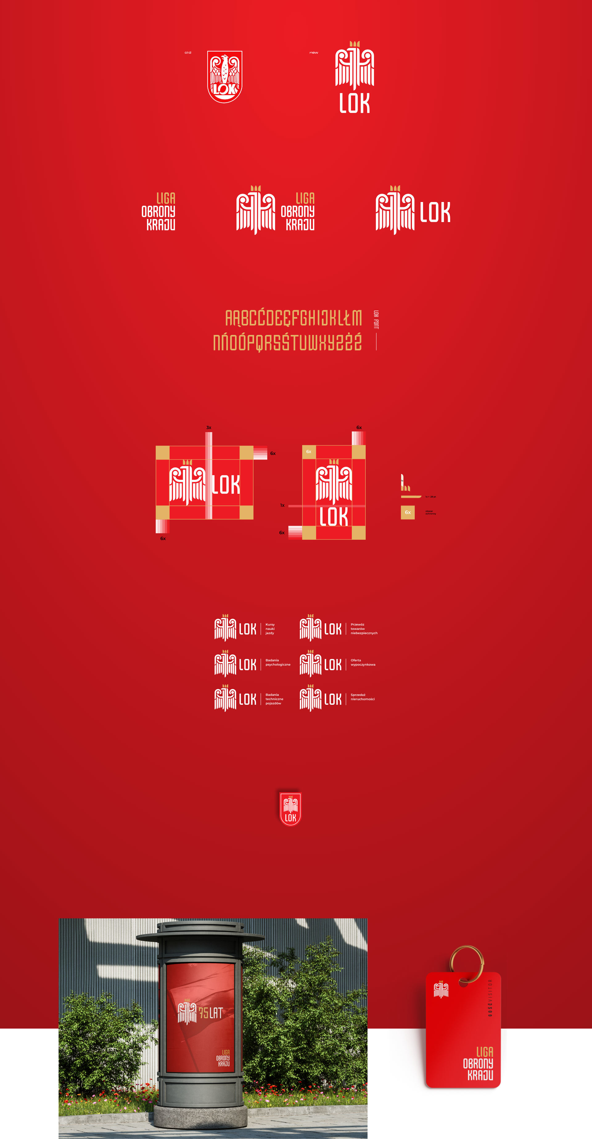 Pierwsza rzecz, z jaką się zmierzyliśmy, to uproszczenie formy poprzedniego znaku, ale z zachowaniem jego powagi i symboliki narodowej. Rozwinęliśmy też skrót nazwy LOK, który do tej pory figurował wyłącznie w takiej formie graficznej. Obecne logo występuje w kilku równorzędnych wariantach. Całość dopełniliśmy elementami identyfikacji graficznej, w tym dedykowaną typografią, która powstała specjalnie dla LOK-u.